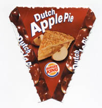 Approximately once a month, I tell myself that I'm going to stop buying evil and expensive junk food and plump for healthier alternatives instead. Inevitably, I get too tired and/or lazy to actually bring food into the office, and sooner or later I end up at the local Burger King, grabbing the inevitable Southern Style Chicken Value Meal and sampling whatever special-offer snack is on offer.The current special is the Dutch Apple Pie, which combines sloppy apple filling which doesn't bear any obvious resemblance to choko and a crunchy topping. My biggest objection to this product is that it's a tad expensive at $2.10 (although I don't suppose the Maccas alternative is much cheaper, and it's far too easy to burn your mouth on). My second-biggest objection is that it didn't come with a spoon, which made for some messy eating and undermined my dignity in the office lunchroom. Those problems aside, though, it's pretty damn tasty, and a worthwhile addition to your stomach should you not be concerned about your weight, dental cavities or contributing to the profits of multinational corporations. However, despite the name, I don't think it contains hallucinogenic drugs.