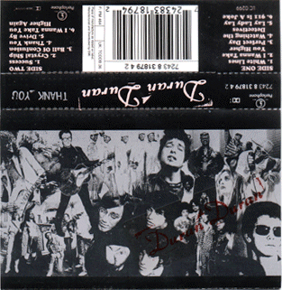 The image you see here is the cover of Duran Duran's 1995 tape, Thank You, which I picked up at Woolworth's Variety for a dollar. Partly, this reflects the relative lack of success the album enjoyed on an international basis, but it also reflects the speedy decline of the audio tape as a medium for recorded music.It's a change I view with sadness; tape was the first medium I bought a lot of music on, and it formed the backbone of my collection for the whole of the 80s (which, if you hadn't noticed, is the only musical decade that really mattered to me). Much of the 90s has been spent replacing those tapes with the compact disc equivalents, and now, when I go second-hand record shopping, it's vinyl I seek (if only for the bigger covers and the collector value). I reflect a fairly brief period of time when tape really was the predominant way to sell music.