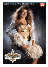 Rather than answering this deep philosophical question, I decided I would search through the cards for the ugliest cheerleader I could find. So far, Kristine Lynn Mauterer, pictured at left, is the winner. But I still have 30 packs to go through, so the results could change at any time. Check back soon for an update.