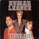 The single itself represented a mixed blessing for the Leaguers in 1986. It returned them to #1 in the US, four years after they first ascended that summit with 'Don't You Want Me?'. This was due in no small part to the production and writing skills of Jimmy Jam & Terry Lewis, who are now most famous for their work with Janet Jackson but were the producers du jour for a whole stack of artists back then. (Trivia fact: in the penultimate episode of Filthy Rich & Catflap, made around this time, Richie and Eddie go to a series of nightclubs and every one is playing a track produced by Jam & Lewis.) In fact, it emerged later that most of the Crash album, from which 'Human' (a Jam/Lewis composition) was extracted, featured sessions musos rather than the League, and that the producers clashed with Phil Oakey over his ability (or otherwise) to sing. Even on the back of the single, there's a picture of the boys alongside the band members.