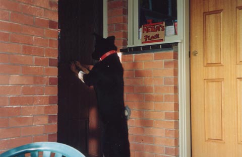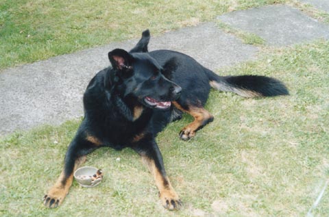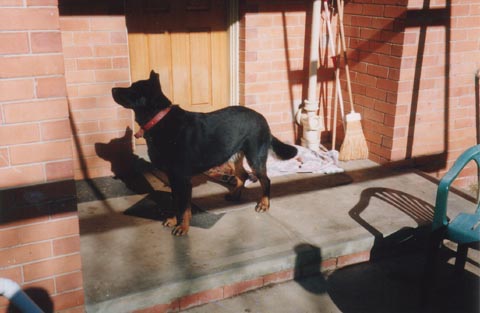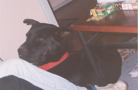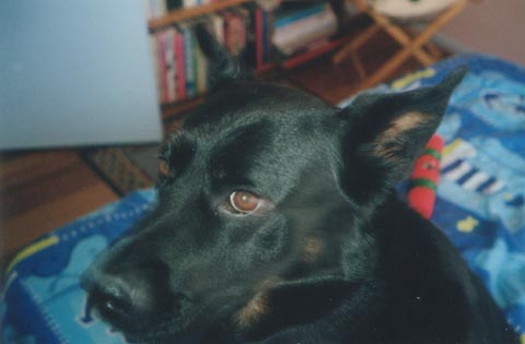 Merlot Desmond Baker lives in Melbourne with his parents, my best friends Arthur and Bron. He is a rottweiler/German Shepherd cross, around seven years old (he's ex-RSPCA, so exact ages are a matter for conjecture), and displays a definite a fondness for spaghetti bolognese. Merlot greatly enjoys his visits from his Uncle Angus, and indeed expects to be walked, fed, allowed to sleep on the bed and paid attention to generally on a regular basis when this happens (which is often). He is regularly told how handsome he looks by complete strangers in off-the-leash parks, except for the small percentage who find his appearance terrifying.